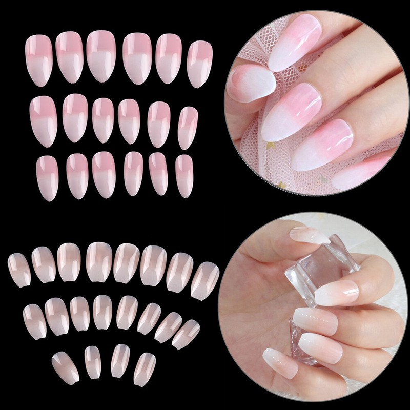 Lovely Pink Stiletto Nails White Gradient Nail Art Patch Jelly